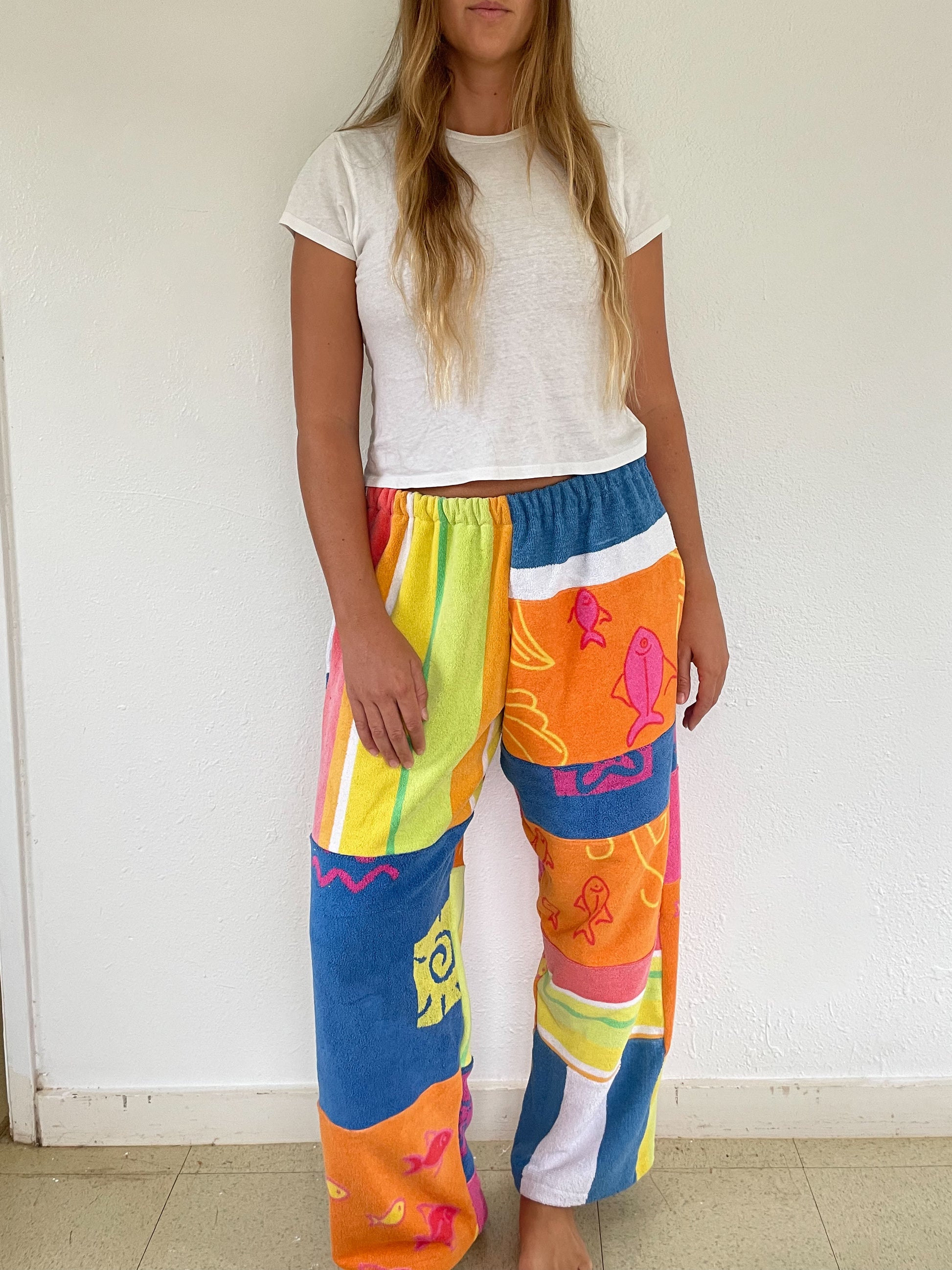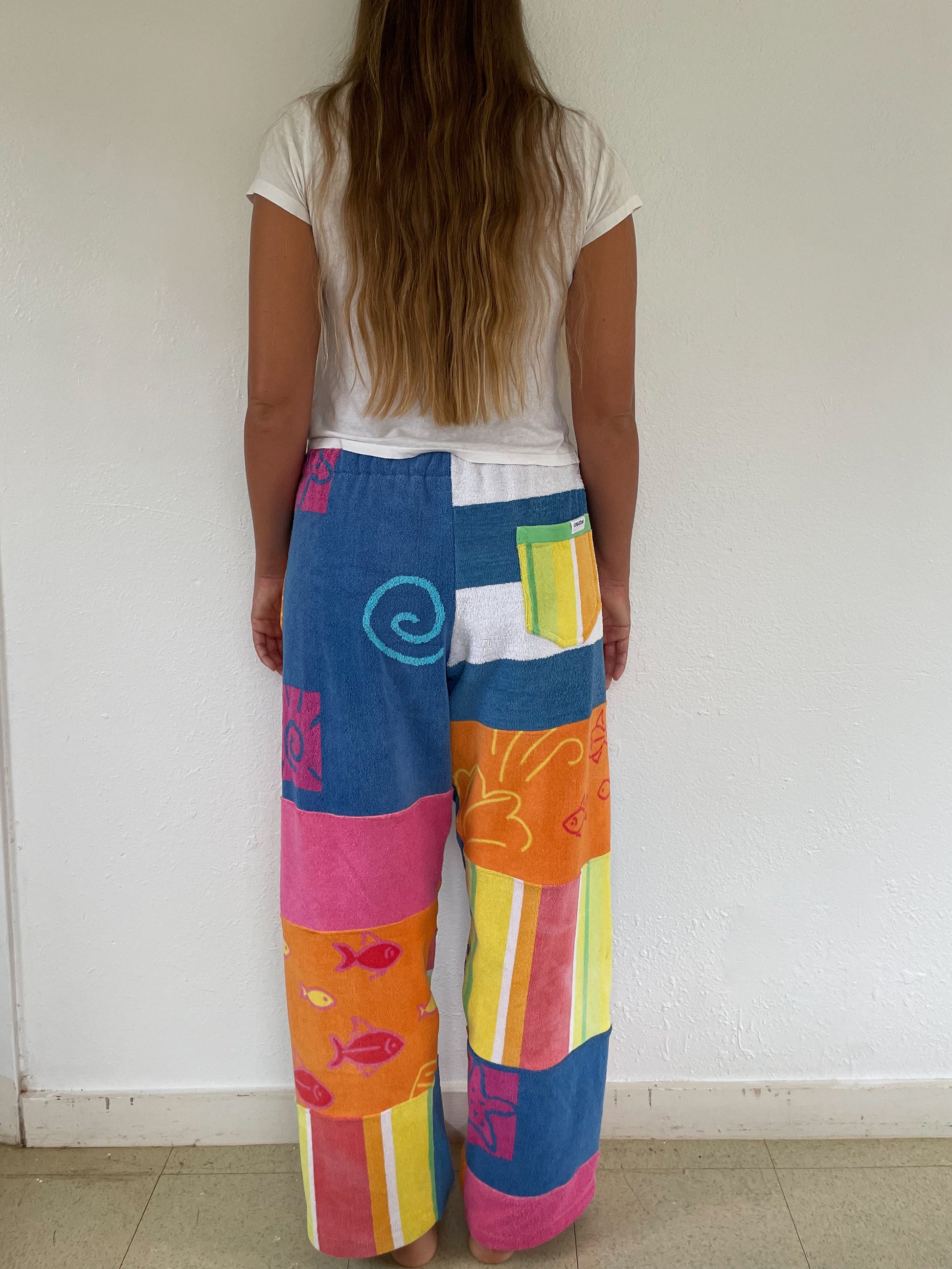 Size Large, loose fitting pants. Inseam length is 32 inches. If you would like it shorter, I would be happy to hem them for you if you leave a note in "cart" or send me a dm or email after purchase :)